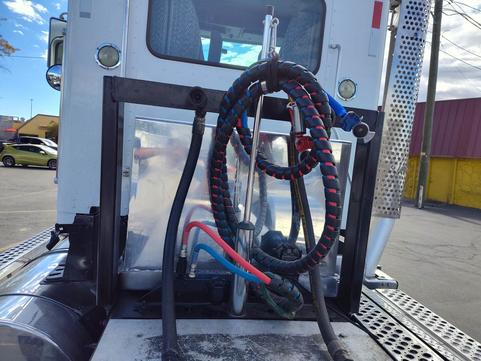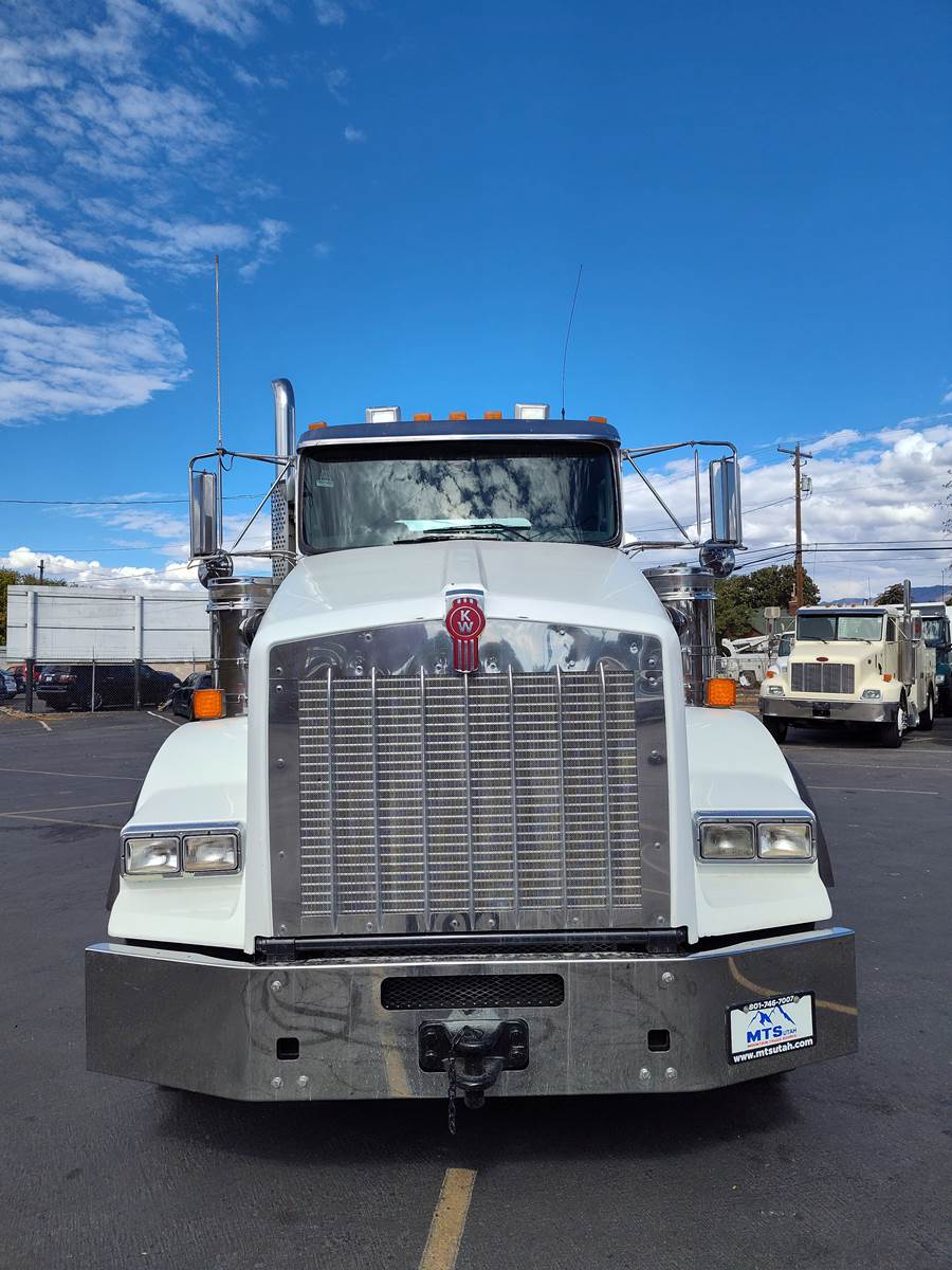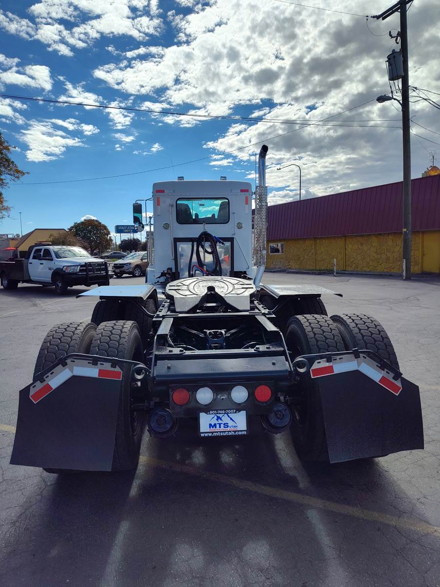 It comes with all-aluminum wheels, 11R24.5 tires (85% tread life), an AM/FM/CD/Bluetooth radio, and dual stainless steel air filters. Additional highlights include a 175-gallon aluminum fuel tank, air-slide fifth wheel, power steering, power locks, and a power window on the passenger side, plus heated mirrors.