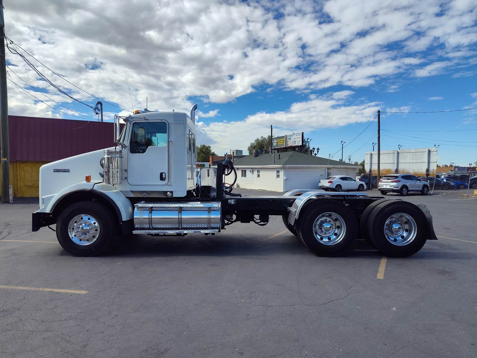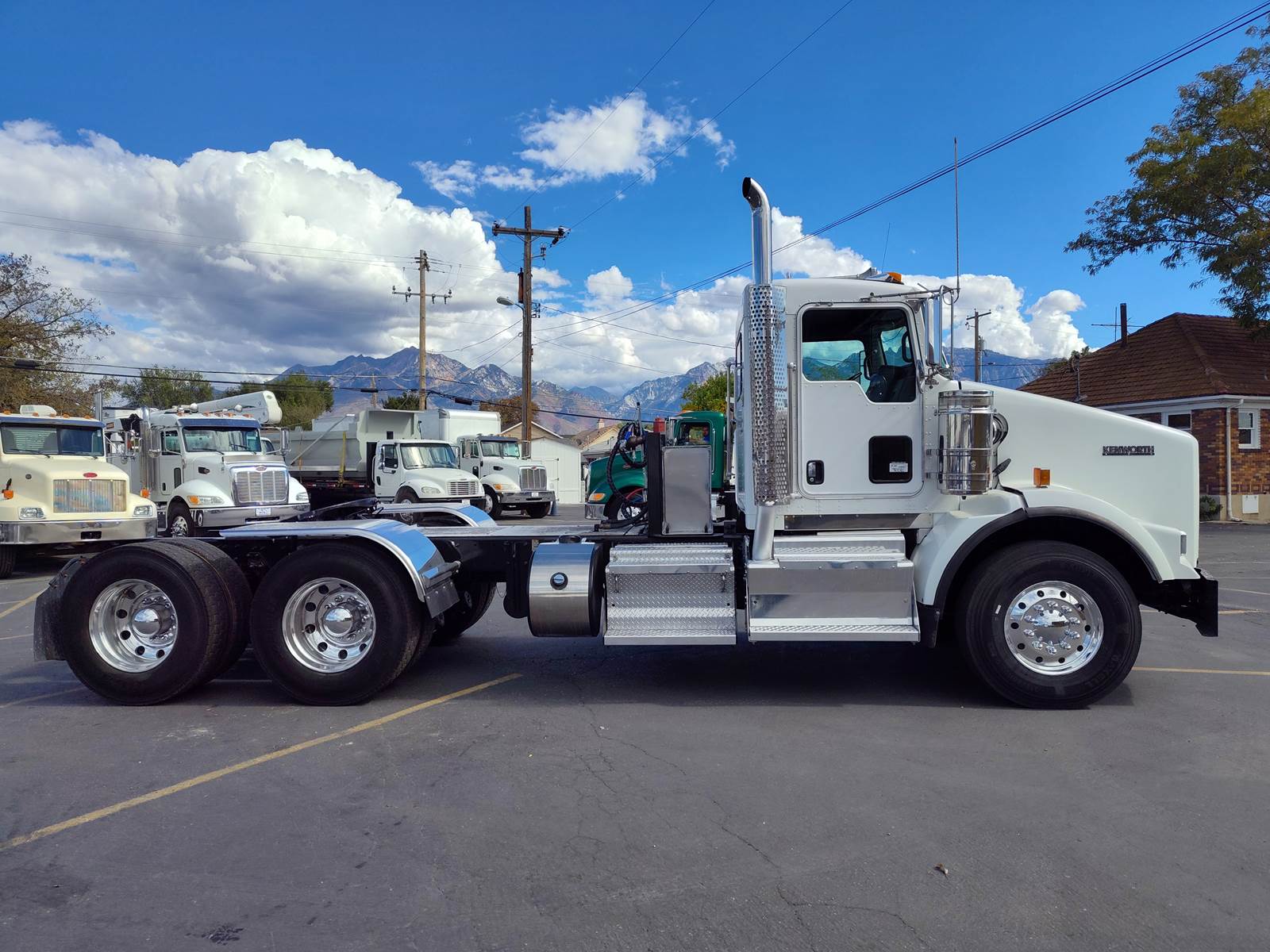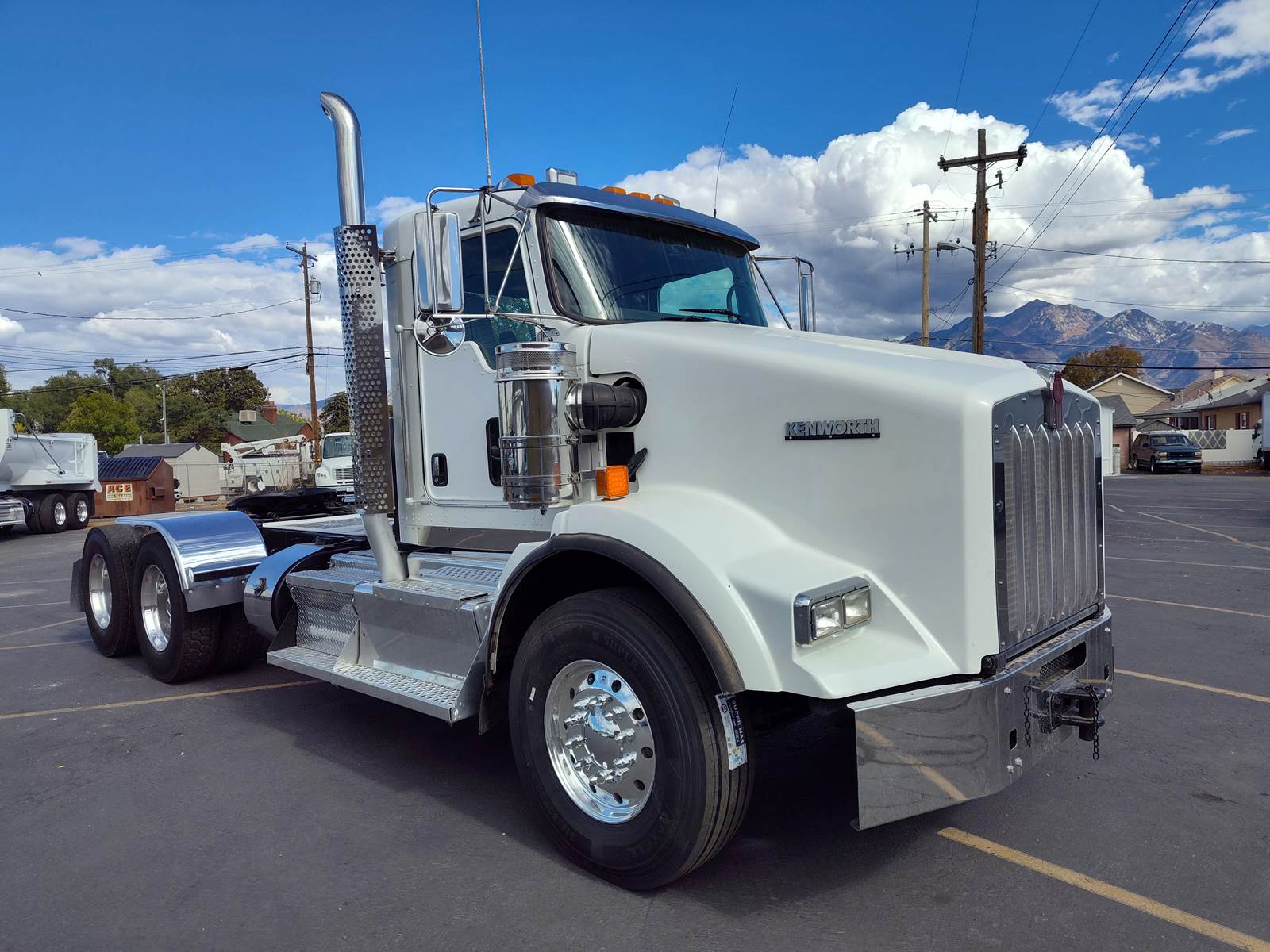 It comes with all-aluminum wheels, 11R24.5 tires (85% tread life), an AM/FM/CD/Bluetooth radio, and dual stainless steel air filters. Additional highlights include a 175-gallon aluminum fuel tank, air-slide fifth wheel, power steering, power locks, and a power window on the passenger side, plus heated mirrors.