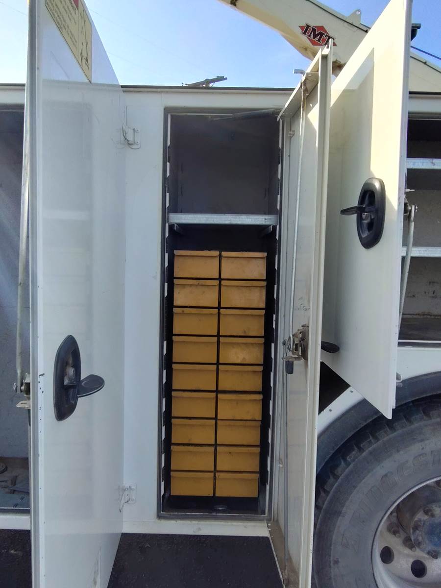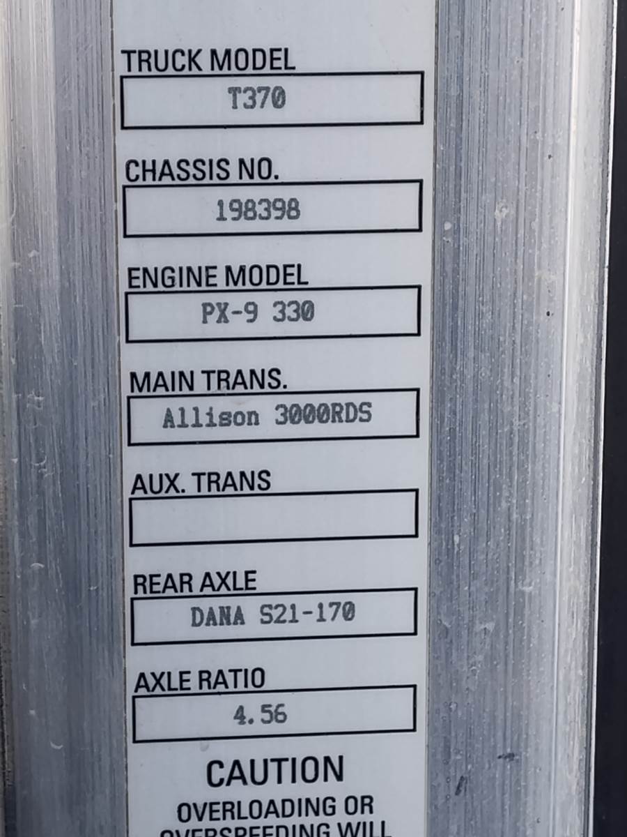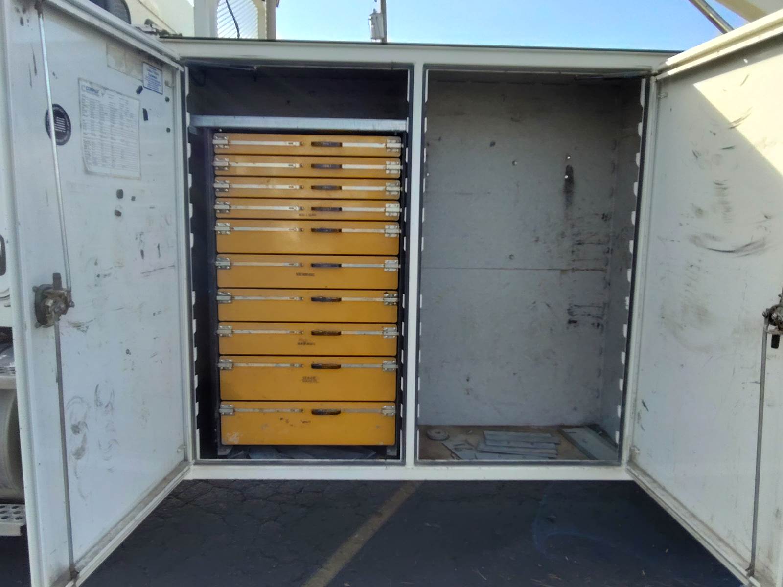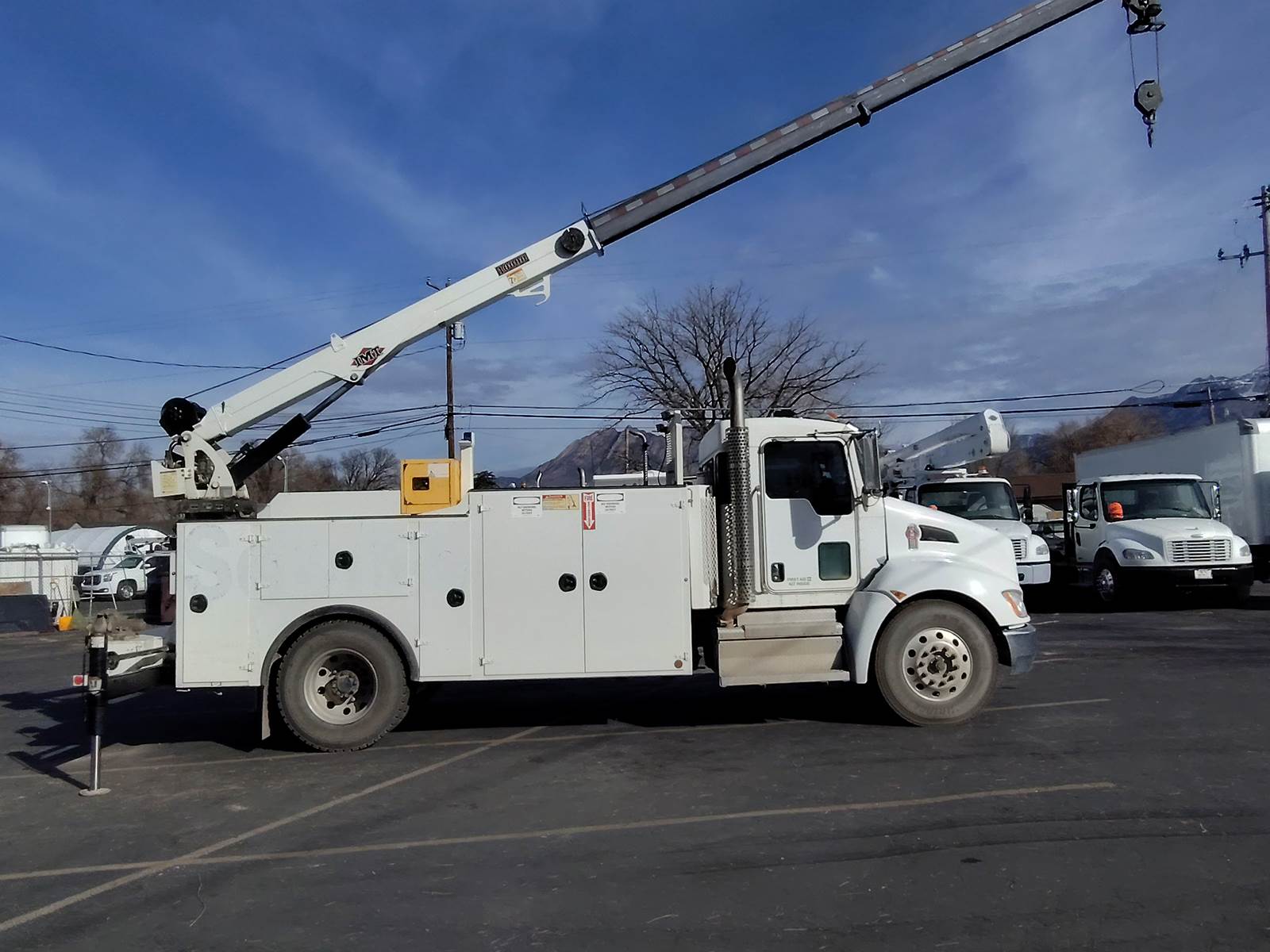 Here is a LOW MILES, Very clean Mechanic's truck. 14' Cobalt truck equipment body, 60" tall compartments Driver side and passenger front, and 52" on the rear passenger side, Plenty of storage. Enpak system, 10,000 lb crane, 32' Reach. Hydraulic air compressor, 2 Hose reels. Inverter. Allison 3,000 RDS Automatic transmission, 6-Speed. Paccar PX-9, 8.9L. 330 HP. 12,000 lb front axle. 21,000 lb rear axle. 33,000 G.V.W.R. 192 W.B. 120 C.A. Chrome bumper, Stainless steel visor. Power locks. Power windows. Power steering, Power mirrors. Engine brake. Diff Lock, leaf air ride suspension, air ride seat on driver side, Battery Kill switch, Tinted windows, A/C. AM/FM/CD Radio. Aluminum wheels, Aluminum fuel tank DPF DEF. Right hand vertical stack. 10 drawer tool cabnet. bot bin. Miller Maxstar 210 Series welder w/ Leads. 27.75" Work bench bumper with vise. Reciever hitch, 11R22.5 tires 80% or better.
